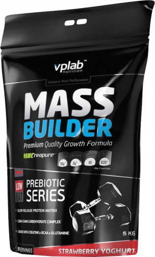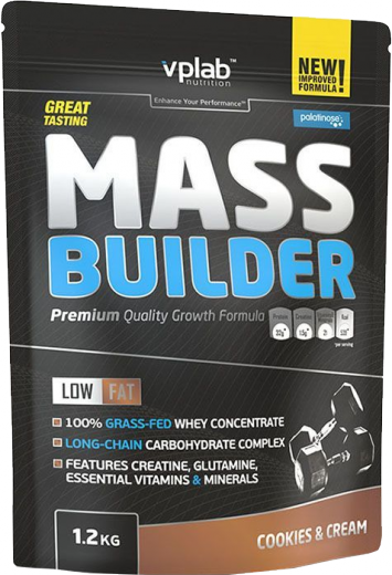 Mass Builder фирмы VP Laboratory - уникальная смесь углеводов и белков, содержащая витамины, минеральные вещества, микроэлементы и креатин для построения мышечной массы, с рекордно низким содержанием жиров. 2 порции коктейля Mass Builder в день, совокупная калорийность которых составляет 1026 калорий (с учетом приготовления на молоке 1,5% ), заряжает бодибилдера энергией во время фазы наращивания мышечной массы. Даже при интенсивной тренировке две порции коктейля обеспечивают достаточный запас калорий, который необходим для наращивания мускулатуры, и препятствуют таким образом снижению ценной мышечной массы. Углеводная смесь обеспечивает немедленное поступление энергии и повышает выносливость во время интенсивных силовых тренировок. Белковая смесь покрывает потребность много тренирующегося бодибилдера в белке. Mass Builder содержит также ценную добавку – поставляющий энергию креатин – для того, чтобы можно было выполнять необходимое для наращивания мышц максимальное количество повторов. Рекомендации по применению: Размешать 100 г порошка (1 2/3 мерных ложки) в 300 мл воды или маложирного молока. Принимать исходя из индивидуальных потребностей.